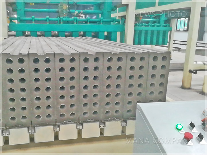 瑪納蒸壓陶粒墻板生產線整體采用公司自主創(chuàng)新研制開發(fā)的新型成組立模技術裝備,采用成組立模法機組流水工藝生產,增加了模車主動行走、集中工位開合、機械抽芯/穿芯、集中式養(yǎng)護等先進技術,大大提高了此生產線的生產效率,提升產能,節(jié)省人工,并且做到操作用工定崗定責,保證整條產線高效、安全運轉。